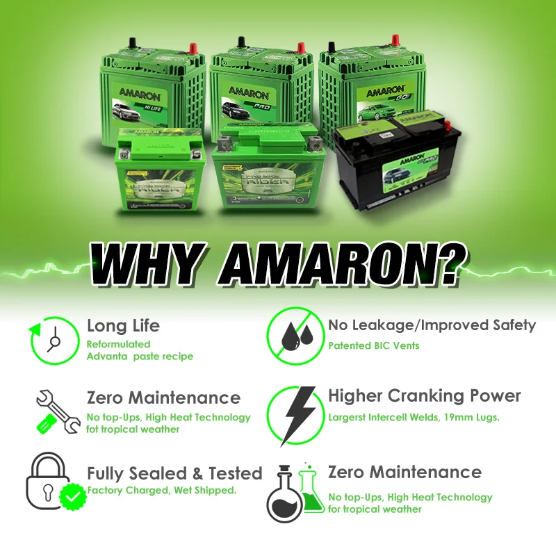 AMARON® batteries have forged a name in Australia due to their incredible value, outstanding quality, and their ability to handle extreme temperature and Australian conditions Amaron® batteries are designed for Automotive, 4WD, and Marine applications, including many Domestic, Japanese, European and Korean Vehicles.