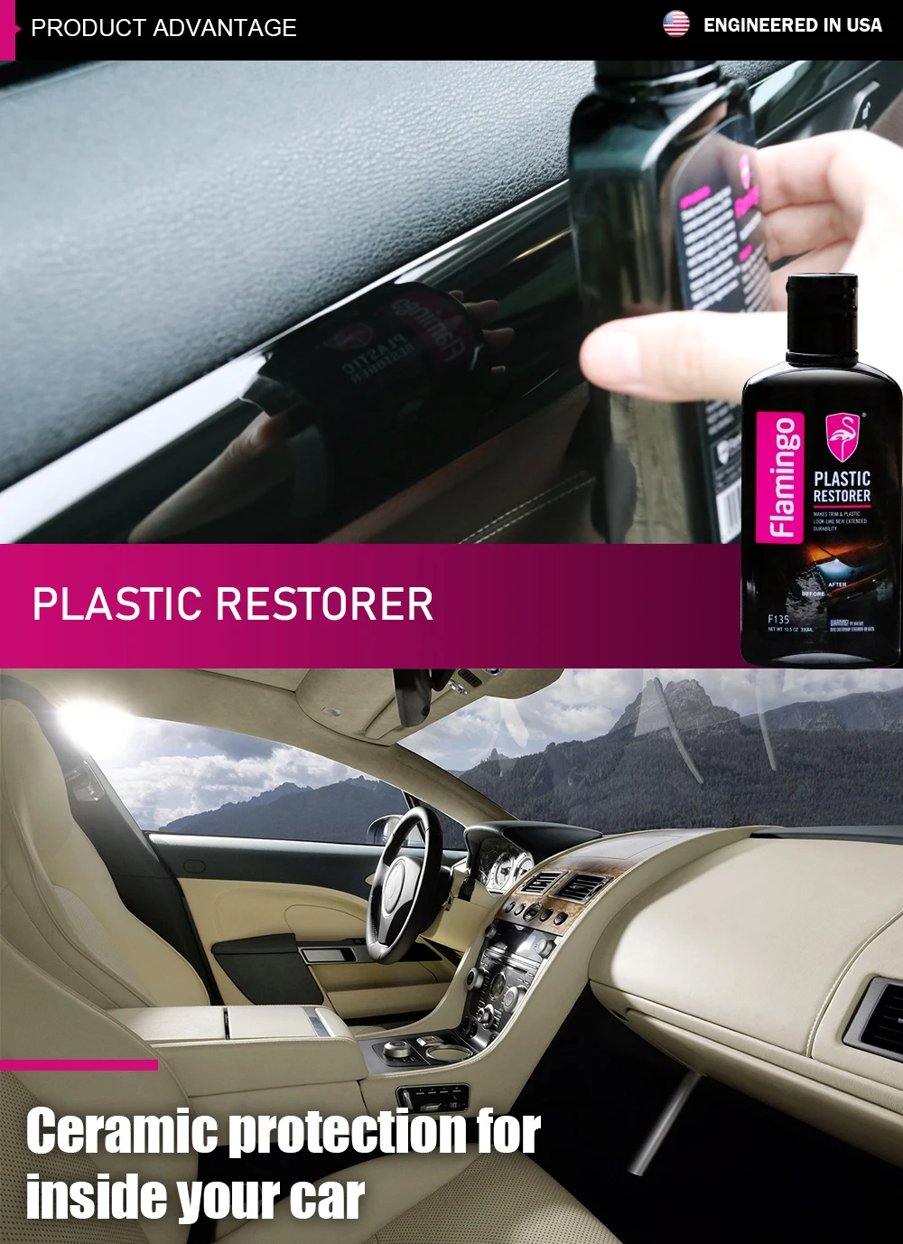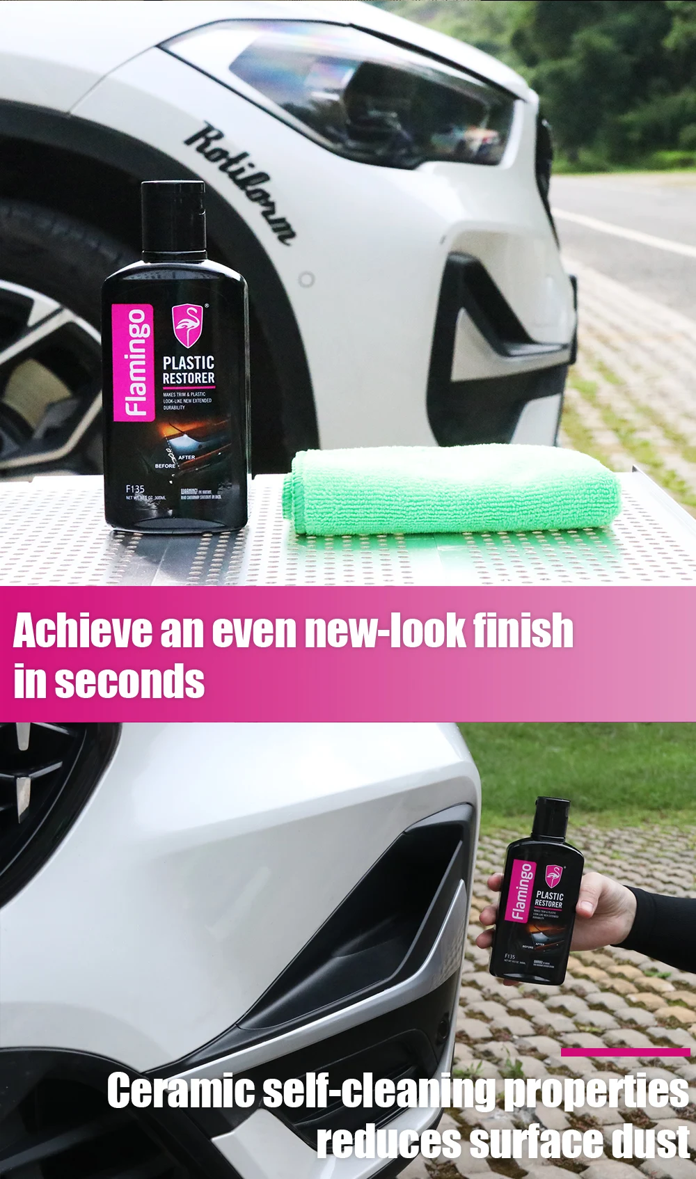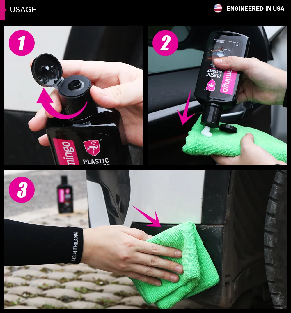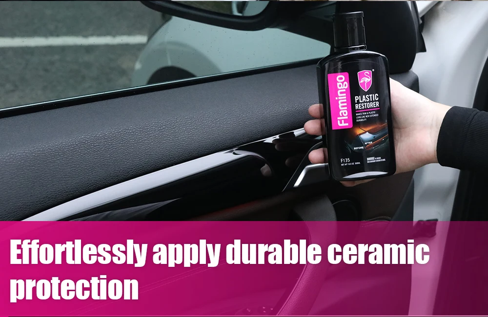 🌟🦩🚗🌟 Flamingo Plastic Restorer penetrates deep into the plastic, restoring its color and protecting it from UV damage, cracking, and fading.