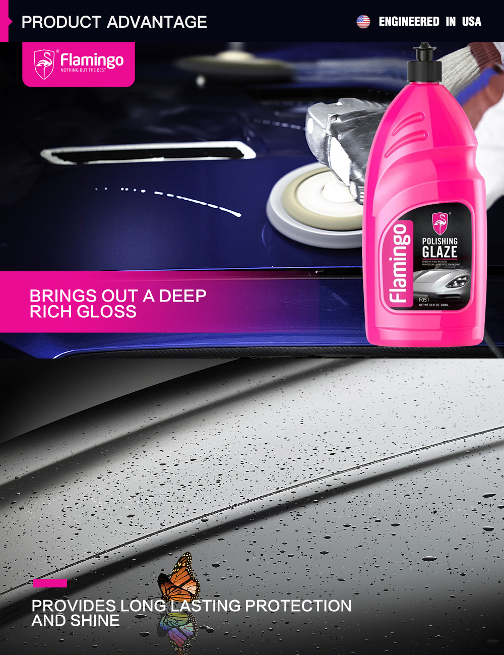FLAMINGO Polishing Glaze is a mildly abrasive, semi-durable polish, which quickly and effectively removes light scratches, oxidation and swirl marks from all painted surfaces. Provides protection and a deep.