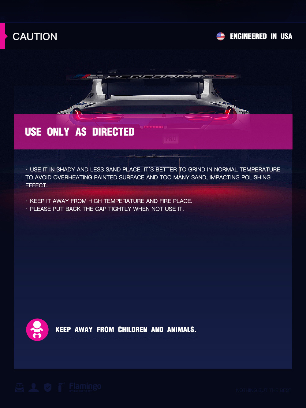 When applied, Flamingo Polishing Glaze gently removes swirl marks, light scratches, and other surface blemishes, leaving behind a smooth and uniform finish. Its fine abrasive particles work to level out the paint surface, revealing a deep, lustrous shine that enhances the overall appearance of the vehicle.