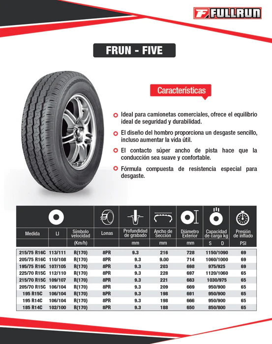 In summary, the FULLRUN Frun Five 195R15C– 8PR offers durability, reliability, and performance tailored to the specific needs of vans and commercial vehicles. It’s an excellent choice for businesses and drivers seeking long-lasting tires capable of withstanding the rigors of daily use while delivering consistent and dependable performance.