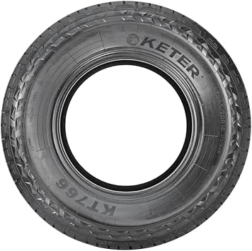 Keter KT766 235/85 R16 120S LT is a premium all-terrain tire built for commercial and off-road use. Featuring a robust 10-ply Load Range E construction, it utilizes a 3-ply polyester casing with dual steel belts and a nylon cap ply for maximum durability. The 0.052″ high-tensile steel bead wires provide exceptional rim retention, while the specially formulated tread compound incorporates wear-resistant additives and flexible polymers for all-season performance. The tire’s extra-thick sidewalls (25% thicker than standard LT tires) offer superior protection against impacts and abrasions.