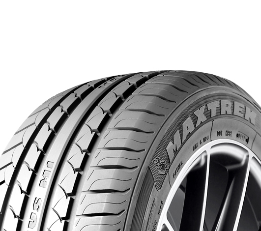 The Maxtrek Maximus M1 215/65R16 102H XL is a summer performance tire designed for passenger vehicles and SUVs. It features an asymmetric tread pattern with vertical and cross grooves, enhancing wet grip and water evacuation. The tire’s construction includes two steel cord belts and two radial plies of nylon cord, providing strength and puncture resistance